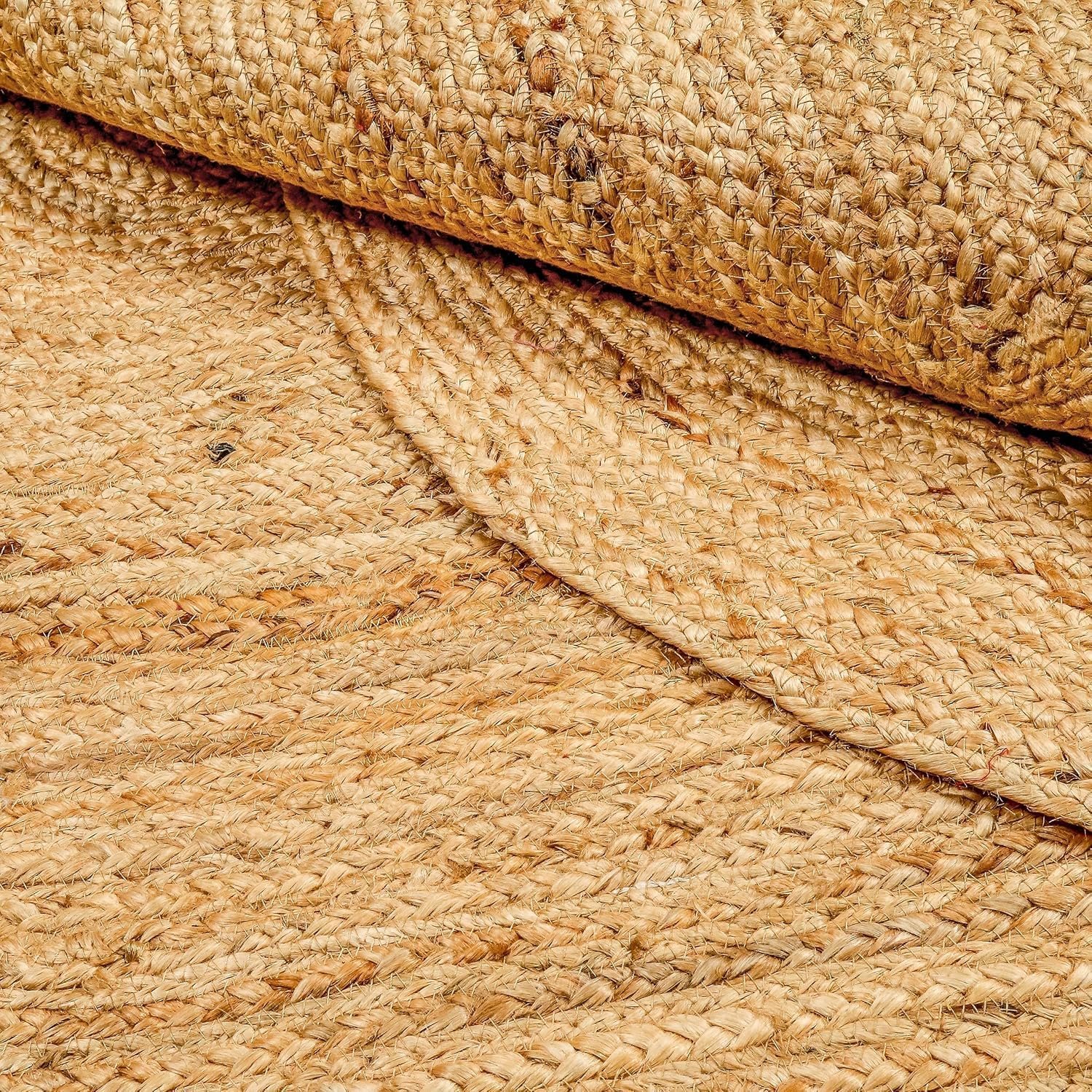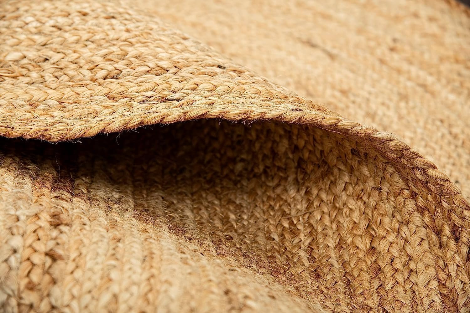 Each handwoven jute rug is meticulously crafted in India by skilled artisans using traditional weaving techniques and locally sourced natural jute fibers. Produced in an ethical facility, this eco-friendly braided rug embodies both environmental sustainability and social responsibility—ensuring you receive a durable, beautiful piece that supports local communities and responsible production practices.